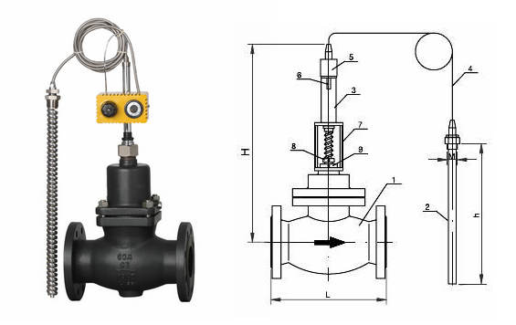 自力式溫度控制閥利用感溫液體不可壓縮的原理,而實(shí)現(xiàn)溫度自動(dòng)調(diào)節(jié),有加熱型和冷卻型兩種,當(dāng)被控介質(zhì)溫度升高,控制閥門(mén)關(guān)閉(加熱型);當(dāng)被控介質(zhì)溫度升高,控制閥門(mén)開(kāi)啟(冷卻型)。